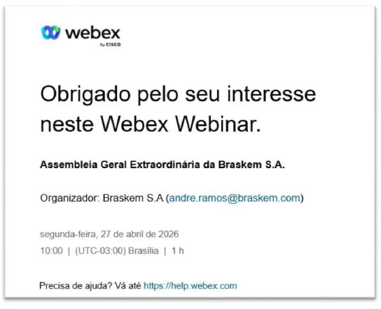 In order to have access to the Meeting, Shareholders must request an access link to the Meeting via email to braskem-ri@braskem.com, by April 25, 2026. The request must be accompanied by the necessary documents to participate in the meeting. Meeting, which were duly indicated in the Call Notice, in the Management Proposal and in this Manual for Participation in the Meeting.