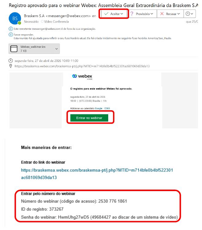 The Shareholders that wish to participate in the Meeting must send to e-mail address braskem-ri@braskem.com, with a request for receipt confirmation, at least 2 days in advance of the date scheduled for the Meeting, that is, by April 25, 2026, a simple copy of the original counterparts of the following documents: