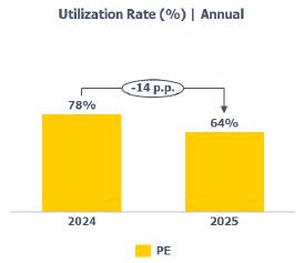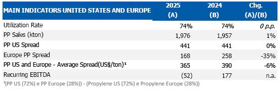 Regarding Braskem's operational performance in 2025, the average utilization rate of Brazil's petrochemical complexes was 68%, lower than in 2024 mainly due to production adjustments in response to lower demand and the execution of scheduled maintenance shutdowns. The 68% level represents the lowest annual utilization rate recorded in Brazil since 2010. Meanwhile, the average PP utilization rate in the United States and Europe remained consistent with the percentage reported in 2024, representing the second consecutive year at the lowest level since 2010.