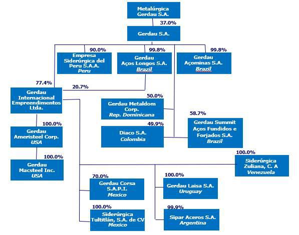 The Company has prepared the Consolidated Financial Statements included herein in accordance with International Financial Reporting Standards (IFRS) as issued by the International Accounting Standards Board (IASB). The following investments are accounted following the equity method: Bradley Steel Processor and MRM Guide Rail, all in North America, of which Gerdau Ameristeel holds 50% of the total capital, the investment in the holding company Gerdau Metaldom Corp., in which the Company holds a 50% stake, in the Dominican Republic, the investment in Gerdau Corsa S.A.P.I. de C.V., in Mexico, in which the Company holds a 70% stake and the investment in Dona Francisca Energética S.A, in Brazil, in which the Company holds a 51.82% stake, the investment in Diaco S.A., in Colombia, in which the Company holds a 49.86% stake, the investment in Gerdau Summit Aços Fundidos e Forjados S.A., in Brazil, in which the Company holds a 58.73% stake and the investment in Juntos Somos Mais Fidelização S.A., in Brazil, in which the Company holds a 27.50% stake.