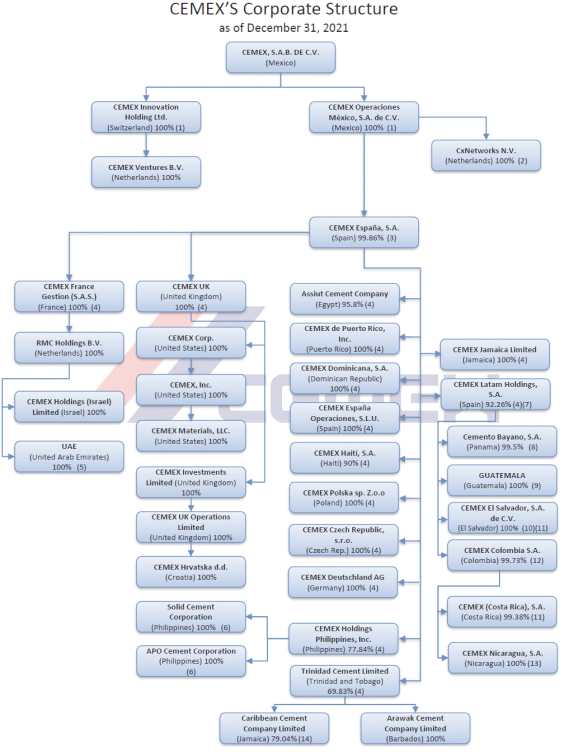 P4Y2021-01-122020-09-172019-11-192020-06-052016-03-162019-03-192003-04-012014-09-112017-12-052031-07-112030-09-172027-06-052029-11-192026-04-162026-03-192025-07-212025-01-112024-12-05falseFYCEMEX SAB DE CV0001076378MXMXIn 2021 and 2020, the column “Additions to fixed assets” includes capital expenditures, which comprises acquisitions of property, machinery and equipment as well as additions of assets for the right-of-use, for combined amounts of $1,099 and $795, respectively (note 16).The shares of TCL trade on the Trinidad and Tobago Stock Exchange. As of December 31, 2021 and 2020, there is a non-controlling interest in TCL of 30.17% of its ordinary shares in both years (note 22.4).CEMEX’s operations in the Philippines are mainly conducted through CEMEX Holdings Philippines, Inc. (“CHP”), a Philippine company whose shares trade on the Philippines Stock Exchange. As of December 31, 2021 and 2020, there is a non-controlling interest in CHP of 22.16% of its ordinary shares (note 22.4).CEMEX Latam Holdings, S.A. (“CLH”), a company incorporated in Spain, trades its ordinary shares on the Colombian Stock Exchange. CLH is the indirect holding company of CEMEX’s operations in Colombia, Panama, Costa Rica, Guatemala, Nicaragua and El Salvador. At year end 2021 and 2020, there is a non-controlling interest in CLH of 7.74% and 7.63%, respectively, of its ordinary shares, excluding shares held in CLH’s treasury (note 22.4).Restructuring costs mainly refer to severance payments and the definite closing of operating sites. In 2021, includes aggregate impairment losses of goodwill of $440 related to the operating segments in Spain, the United Arab Emirates and the Information Technology business (note 17.2), impairment losses of internally developed software capitalized in prior years and other intangible assets of $53 (note 17.1), as well as impairment losses of fixed assets of $43 (note 16.1). In 2020, include impairment losses of goodwill and other intangible assets of $1,020 and $194, respectively, related to CEMEX’s assets and its Reporting Segment in the United States (notes 17.1 and 17.2), as well as impairment losses of fixed assets of $306, mainly related to idle assets in the United States, Spain and the United Kingdom (note 16.1). In 2019, includes impairment losses of fixed assets of $64 (note 16.1).In 2021, 2020 and 2019, includes $29, $11 and $55, respectively, in connection with property damages and natural disasters (note 26.1). In 2020, includes assets and liabilities of $26 and $6, respectively, associated with a committed sale of certain assets in France negotiated in December 2020.Non-trade accounts receivable are mainly attributable to the sale of assets.Includes the capitalized direct costs incurred in the development stage of internal-use software, such as professional fees, direct labor and related travel expenses. The capitalized amounts are amortized to the statement of operations over a period ranging from 3 to 5 years. This caption is primarily associated with Neoris N.V., CEMEX’s subsidiary involved in the sale of information technology and services. This caption refers to the operating segments in Israel, the Czech Republic and Egypt. This caption refers to the operating segments in the Dominican Republic, the Caribbean and Panama. Current provisions primarily consist of accrued employee benefits, insurance payments, accruals for legal assessments and others. These amounts are revolving in nature and are expected to be settled and replaced by similar amounts within the next 12 months.Provisions for legal claims and other responsibilities include items related to tax contingencies.Environmental liabilities include future estimated costs arising from legal or constructive obligations, related to cleaning, reforestation and other remedial actions to remediate damage caused to the environment. The expected average period to settle these obligations is greater than 15 years.As of December 31, 2021 and 2020, includes $6 and $12, respectively, of the non-current portion of taxes payable in Mexico.As of December 31, 2021 and 2020, the balance includes deferred revenues of $32 and $42, respectively, that are amortized to the income statement as deliverables are fulfilled over the maturity of long-term clinker supply agreements.Provisions for asset retirement include future estimated costs for demolition, cleaning and reforestation of production sites at the end of their operation, which are initially recognized against the related assets and are depreciated over their estimated useful life. The increase in 2021 mainly refers to the decrease in the discount rate as well as update in estimates in CEMEX’s operations in the United States.As of December 31, 2021 and 2020, contract liabilities with customers included $219 and $161, respectively, of advances received from customers, as well as in 2021 and 2020 the current portion of deferred revenues in connection with advances under long-term clinker supply agreements of $4 and $4, respectively.As of December 31, 2021 and 2020, includes $7 and $19, respectively, of the current portion of other taxes payable in Mexico.Estimated cash flows on floating rate denominated debt were determined using the floating interest rates in effect as of December 31, 2021.Represents estimated annual payments under these benefits for the next 10 years (note 20), including the estimate of new retirees during such future years.The schedule of debt payments, which includes current maturities, does not consider the effect of any refinancing of debt that may occur during the following years. In the past, CEMEX has replaced its long-term obligations for others of a similar nature.Future payments for the purchase of raw materials are presented based on contractual nominal cash flows. Future nominal payments for energy were estimated for all contractual commitments based on an aggregate average expected consumption per year using the futur