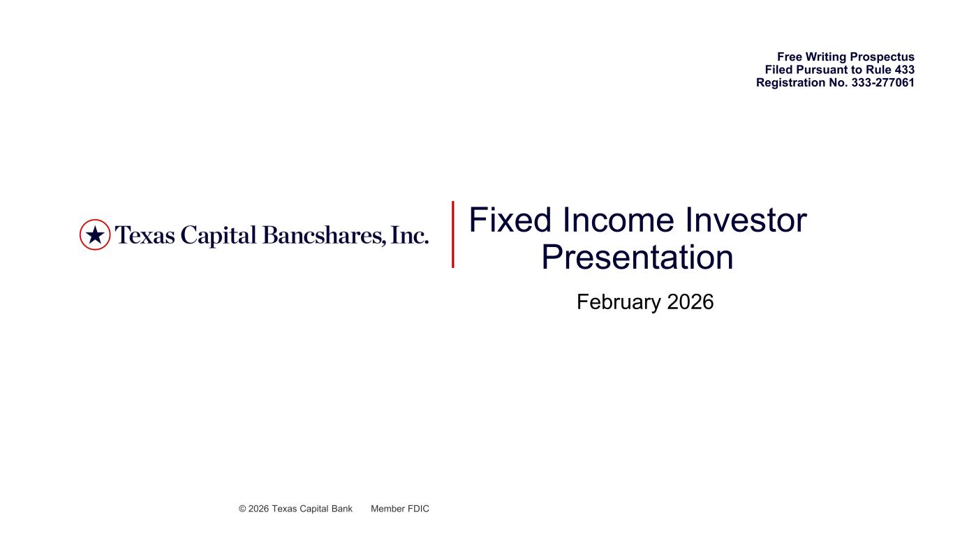 © 2026 Texas Capital Bank Member FDIC February 2026 Fixed Income Investor Presentation Free Writing Prospectus Filed Pursuant to Rule 433 Registration No. 333-277061