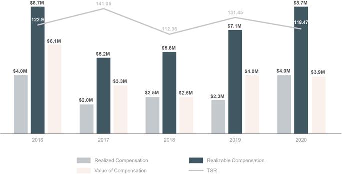 The 2020 total compensation for our median employee was $67,587 and was $4,322,852 for our CEO. The resulting ratio of our CEO’s pay to the pay of our median employee for 2020 is 64 to 1.
