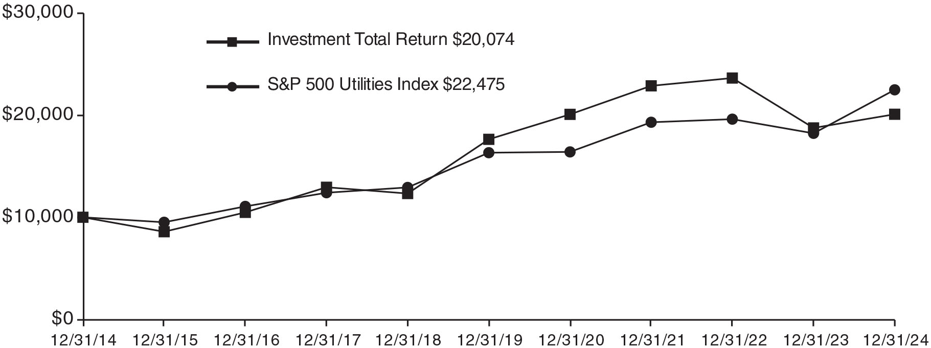 Year-to-date, some of the Fund’s top contributors were NextEra Energy Inc. (8.4% of total investments as of December 31, 2024; 21.5%), National Fuel Gas (6.3%; 25.3%), American Electric Power (3.6%; 24.4%), ONEOK (3.2%; 50.2%) and Constellation Energy (1.0%; 92.7%).