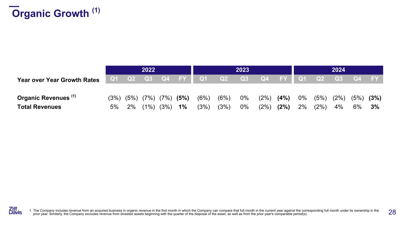 2 Certain statements in this presentation are “forward-looking statements” within the meaning of the Private Securities Litigation Reform Act of 1995, particularly those regarding our 2025 financial guidance. These forward-looking statements are based on management’s current expectations or beliefs as of February 24, 2025 (“Release Date”) and are subject to numerous assumptions, risks, and uncertainties that could cause actual results to differ materially from those described in the forward-looking statements. These factors and uncertainties include, among other items: the Company’s ability to grow advertising, licensing, and subscription revenues, profitability, and cash flows, particularly in light of an uncertain U.S. or worldwide economy, including the possibility of economic downturn or recession; the Company’s ability to make interest and debt payments; the Company’s ability to identify, close, and successfully transition acquisitions; customer growth and retention; the Company’s ability to create compelling content; our reliance on third-party platforms; the threat of content piracy and developments related to artificial intelligence; increased competition and rapid technological changes; variability of the Company’s revenue based on changing conditions in particular industries and the economy generally; protection of the Company’s proprietary technology or infringement by the Company of intellectual property of others; the risk of losing critical third-party vendors or key personnel; the risks associated with fraudulent activity, system failure, or a security breach; risks related to our ability to adhere to our internal controls and procedures; the risk of adverse changes in the U.S. or international regulatory environments, including but not limited to the imposition or increase of taxes or regulatory-related fees; the risks related to supply chain disruptions, inflationary conditions, and rising interest rates; the risk of liability for legal and other claims; and the numerous other factors set forth in the Company’s filings with the Securities and Exchange Commission (“SEC”). For a more detailed description of the risk factors and uncertainties affecting the Company, refer to our most recent Annual Report on Form 10-K and the other reports filed by the Company from time-to-time with the SEC, each of which is available at www.sec.gov. The forward-looking statements provided in this presentation, including those regarding our 2025 financial guidance, are based on limited information available to the Company as of the Release Date and are subject to change. Although management’s expectations may change after the Release Date, the Company undertakes no obligation to revise or update these statements. All information in this presentation speaks as of the Release Date and any redistribution or rebroadcast of this presentation after that date is not intended and will not be construed as updating or confirming such information. Capitalized terms not otherwise defined in this presentation have the meanings set forth in the Company’s earnings press release issued on the Release Date. Third-Party Information Any third-party trademarks, including names, logos and brands, referenced by the Company in this presentation are property of their respective owners. Any references to third-party trademarks are for identification purposes only and shall be considered nominative fair use under trademark law. Industry, Market and Other Data Certain information that may be contained in this presentation concerning our industry and the markets in which we operate, including our general expectations and market position, market opportunity and market size, is based on reports from various sources. Because this information involves a number of assumptions and limitations, you are cautioned not to give undue weight to such information. We have not independently verified market data and industry forecasts provided by any of these or any other third-party sources referred to in this presentation. In addition, projections, assumptions and estimates of our future performance and the future performance of the industry in which we operate are necessarily subject to a high degree of uncertainty and risk due to a variety of factors. These and other factors could cause results to differ materially from those expressed in the estimates made by third parties and by us. Non-GAAP Financial information Included in this presentation are certain financial measures that are not calculated in accordance with U.S. generally accepted accounting principles ("GAAP") and are not intended to be considered in isolation or as a substitute for, or superior to, the financial information prepared and presented in accordance with GAAP. The non-GAAP measures, as defined by Ziff Davis, may not be comparable to similar non-GAAP measures presented by other companies, limiting their usefulness for comparison purposes. The presentation of such measures, which may include adjustments to exclude unusual or non-recurring items, should not be construed as an inference that Ziff Davis’ future results or leverage will be unaffected by other unusual or non-recurring items. Please see the "Supplemental Information" to this presentation for details related to how we define these non-GAAP measures and reconciliations thereof to the most directly comparable GAAP measures. We use these non-GAAP financial measures for financial and operational decision making and as a means to evaluate period-to-period comparisons. We believe that these non-GAAP financial measures provide meaningful supplemental information regarding our performance and liquidity by excluding certain items that may not be indicative of our recurring core business operating results or, in certain cases, may be non-cash in nature. We believe that both management and investors benefit from referring to these non-GAAP financial measures in assessing our per