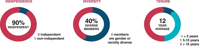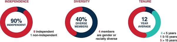 We believe our directors’ breadth of experience, diversity, tenure and skills strengthen our Board’s independent leadership and the effective oversight of management.