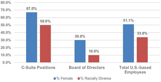 | • | Diversity within the Company. We are proud that 100% of our executive leadership team (i.e., our “Chief” level positions) consists of women and minorities. Many of our other key leaders are also women or minorities. Additionally, 40% of our directors on our Board are minorities or women. We also aim to have a workforce that reflects the diversity of the qualified talent that is available in the markets we serve. As of November 2021, 65.3% of our U.S.-based employees identified as minorities or women, and we are a Paradigm for Parity Coalition Company, which is a coalition of companies committed to addressing gender and diversity gaps in corporate leadership. |