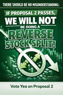 There should be no misunderstanding: if Proposal 2 passes, we will not be doing a reverse stock split.