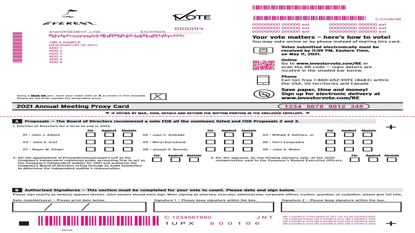 Publish Everest’s next full and new edition of its comprehensive Corporate Responsibility Report at or prior to the mailing of next year’s proxy statement.