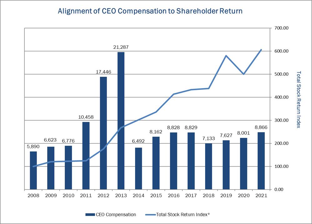 The unvested equity awards for each Named Executive Officer are valued at the NYSE closing price of $273.92 at 2021 year end as if all vested on December 31, 2021.