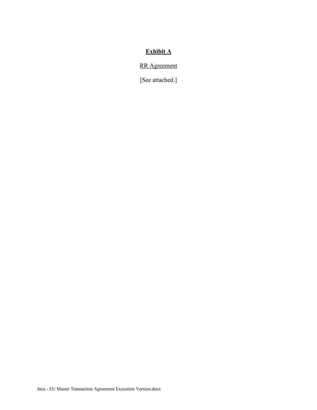 Inca - EU Master Transaction Agreement Execution Version.docx Exhibit A RR Agreement [See attached.]