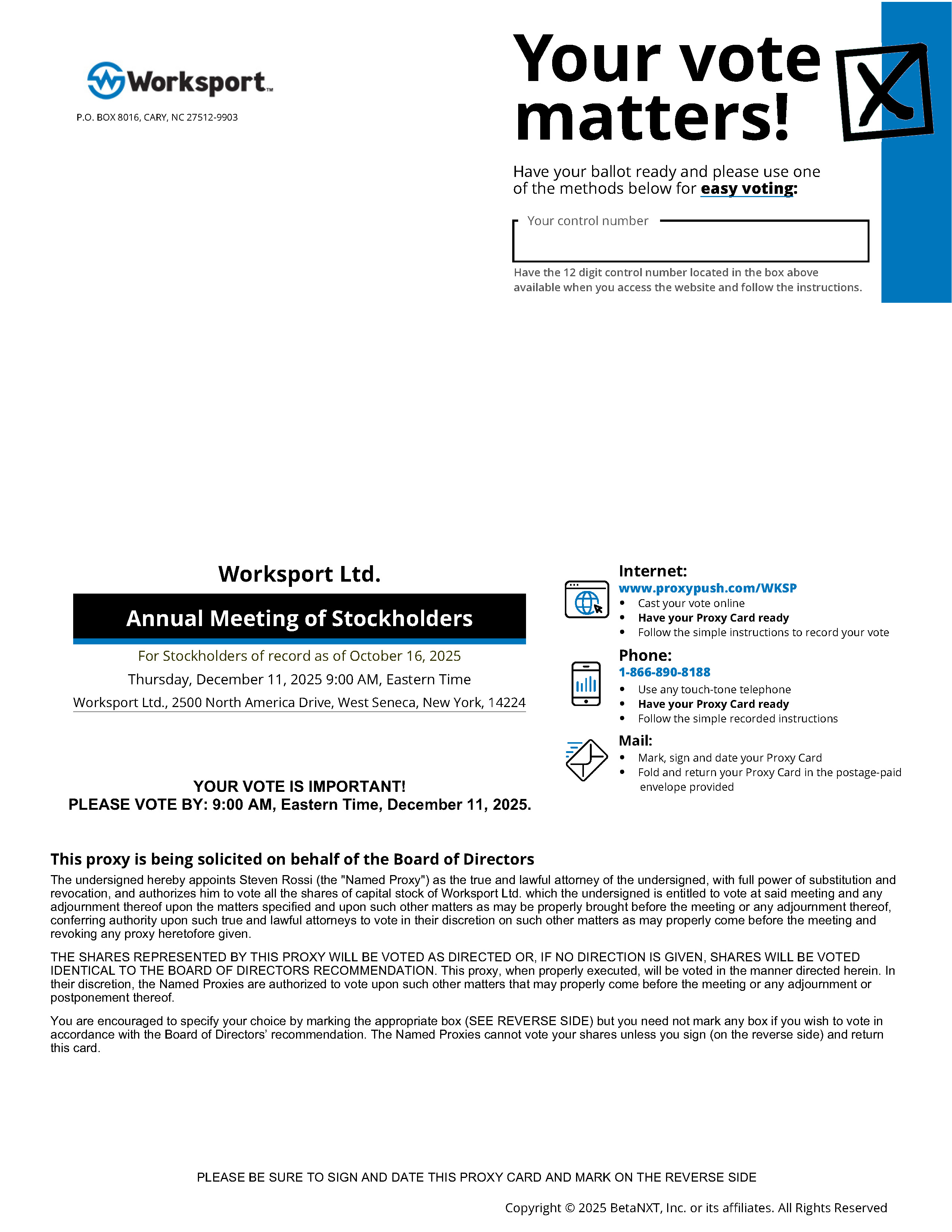 IMPORTANT NOTICE REGARDING AVAILABILITY OF PROXY MATERIALS. The Notice of Internet Availability of Proxy Materials is first being mailed to our stockholders on or about October 31, 2025, which indicates that the Notice of Annual Meeting, this Proxy Statement and our 2024 Annual Report, are available at www.proxydocs.com/WKSP.