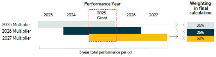 • Explicit adjustments reflect the interim performance factor estimates for the 2023, 2024 and 2025 awards approved by the Board in February 2026. This would also include clawbacks if applicable, but none were applied in 2025.