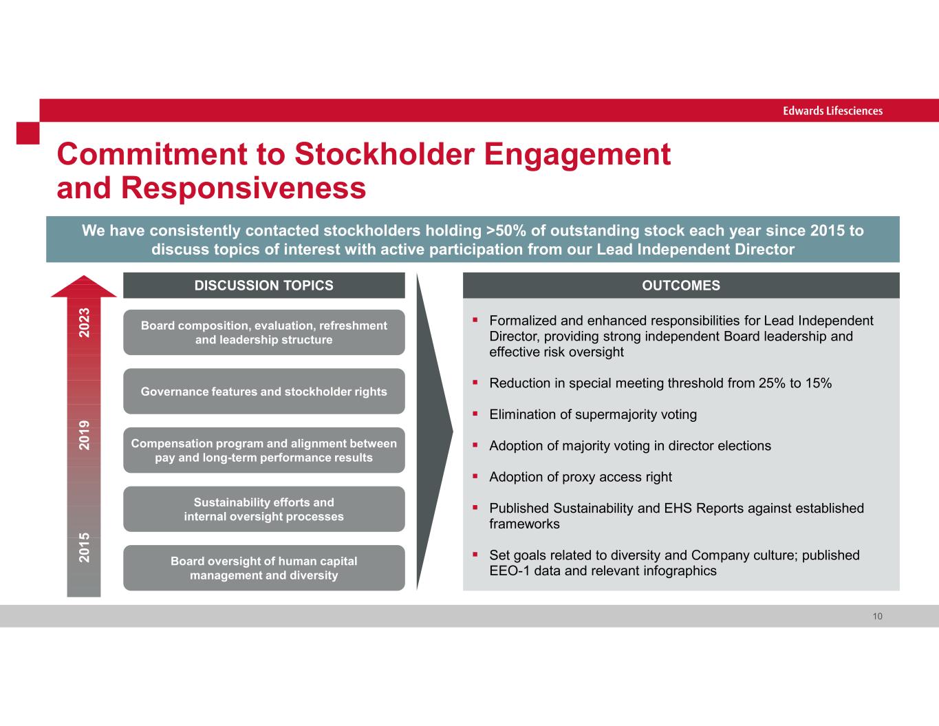 Edwards Lifesciences Spring 2023 Stockholder Engagement
