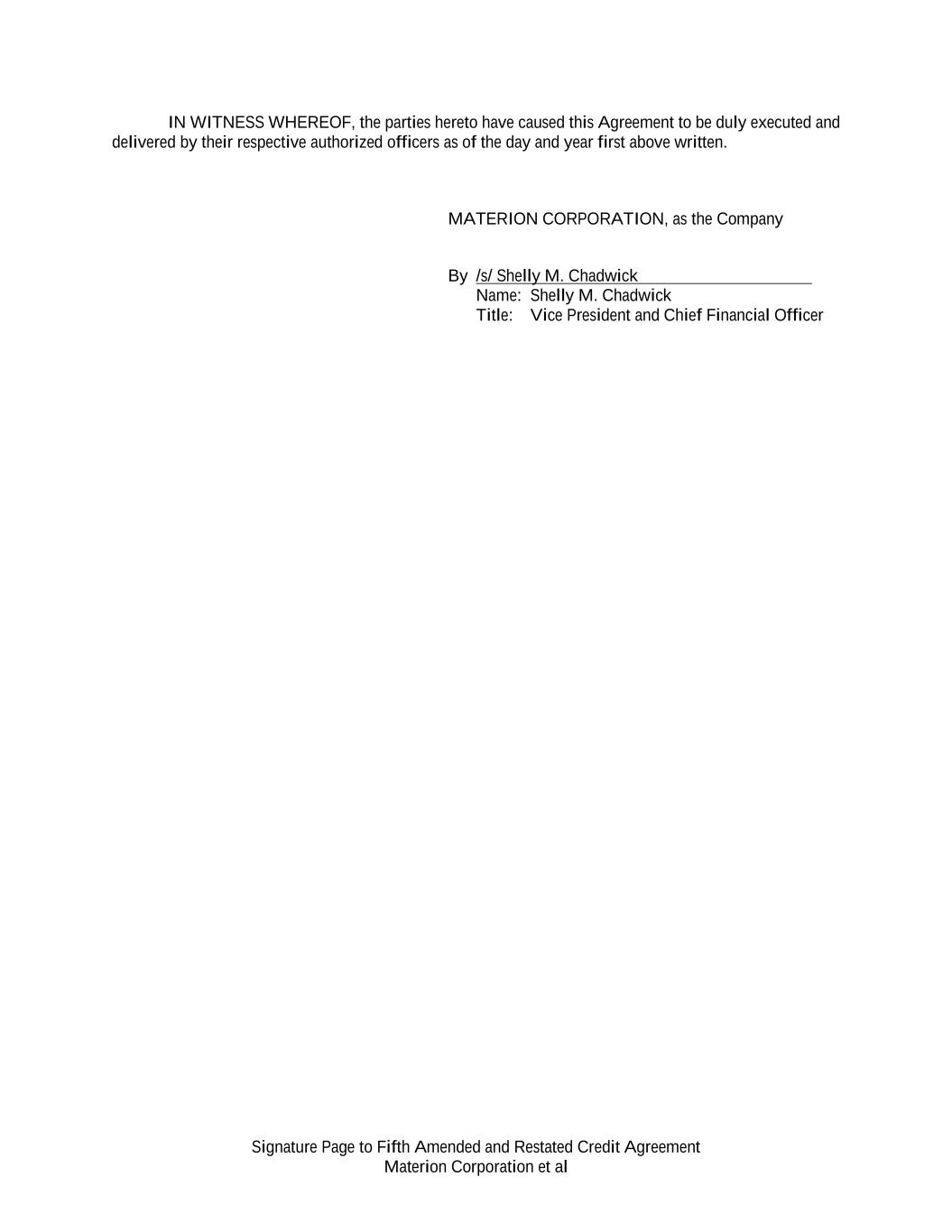 Signature Page to Fifth Amended and Restated Credit Agreement Materion Corporation et al IN WITNESS WHEREOF, the parties hereto have caused this Agreement to be duly executed and delivered by their respective authorized officers as of the day and year first above written. MATERION CORPORATION, as the Company By /s/ Shelly M. Chadwick Name: Shelly M. Chadwick Title: Vice President and Chief Financial Officer