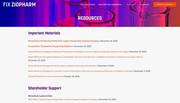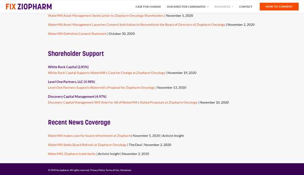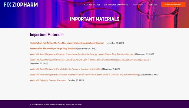 Item 2: Also on November 24, 2020, Watermill posted the following materials to www.FixZiopharm.com: