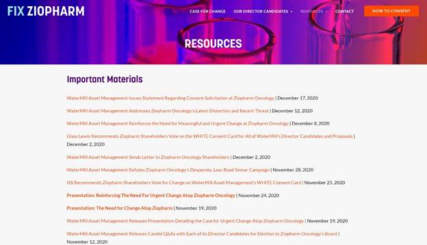 Item 2: Also on December 17, 2020, WaterMill posted the following materials to www.FixZiopharm.com: