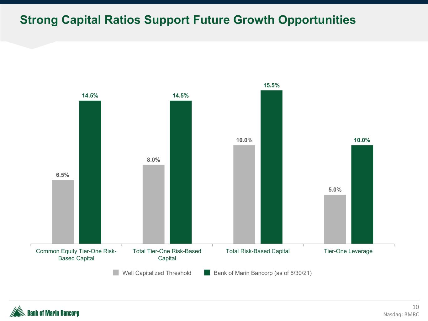 Strong Capital Ratios Support Future Growth Opportunities 10 Nasdaq: BMRC 6.5% 8.0% 10.0% 5.0% 14.5% 14.5% 15.5% 10.0% Well Capitalized Threshold Bank of Marin Bancorp (as of 6/30/21) Common Equity Tier-One Risk- Based Capital Total Tier-One Risk-Based Capital Total Risk-Based Capital Tier-One Leverage