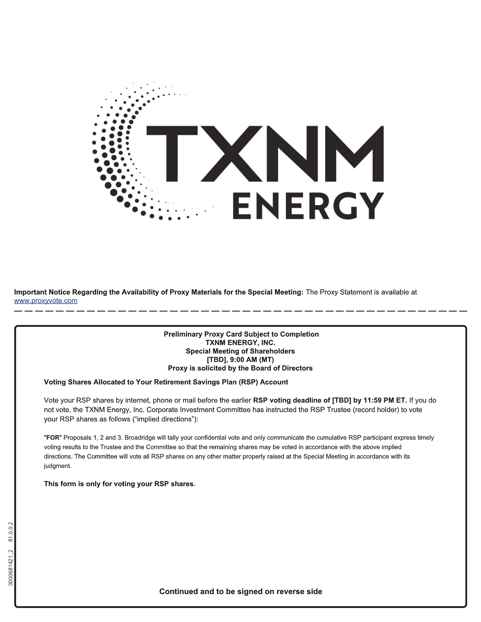 To Our Shareholders: The special meeting of shareholders of TXNM Energy, Inc., or TXNM, will be held as follows: