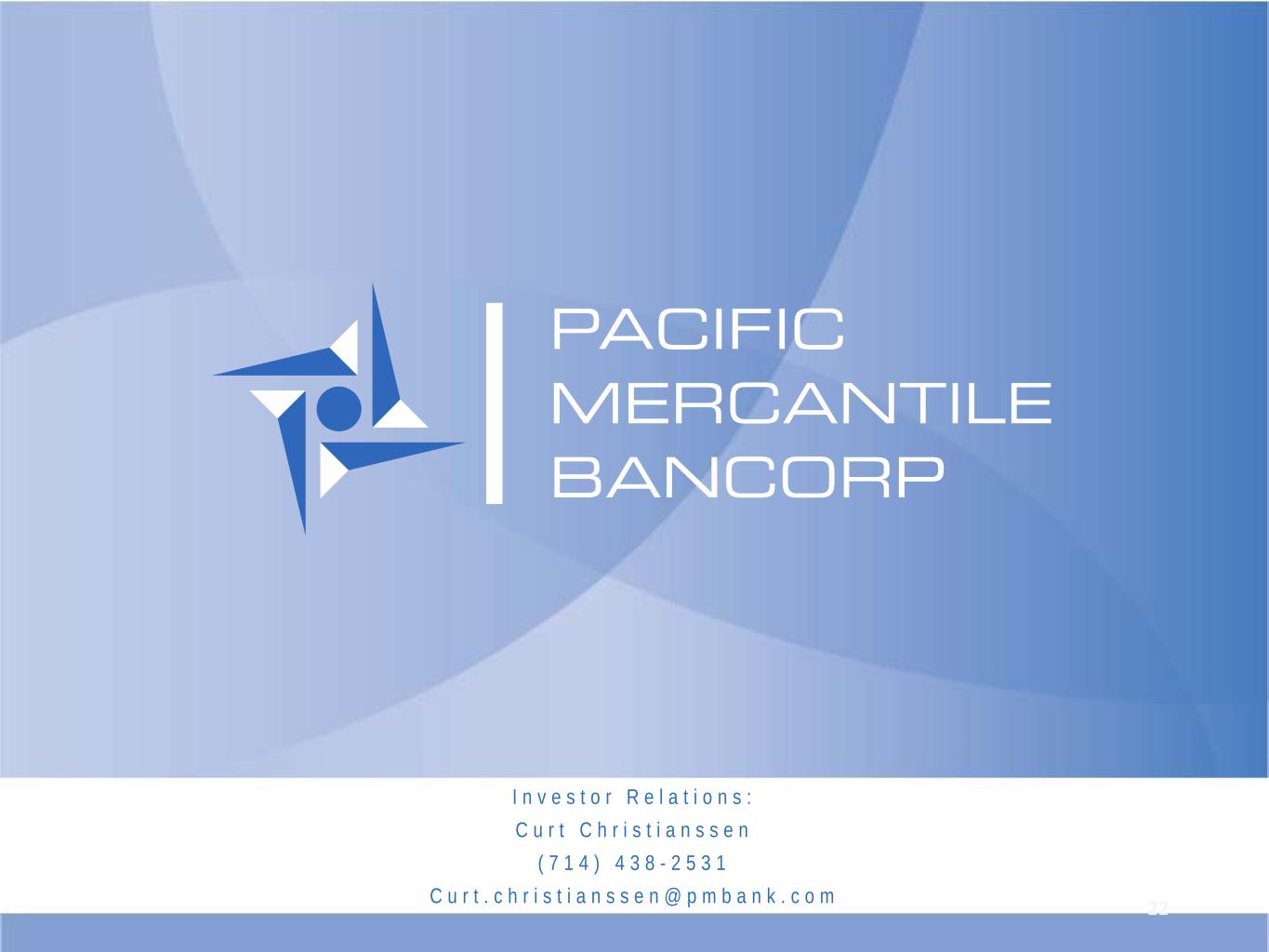 I n v e s t o r R e l a t i o n s : C u r t C h r i s t i a n s s e n ( 7 1 4 ) 4 3 8 - 2 5 3 1 C u r t . c h r i s t i a n s s e n @ p m b a n k . c o m 22