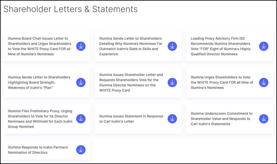 Illumina requests shareholders to vote the WHITE proxy card today FOR all nine of Illumina's director nominees