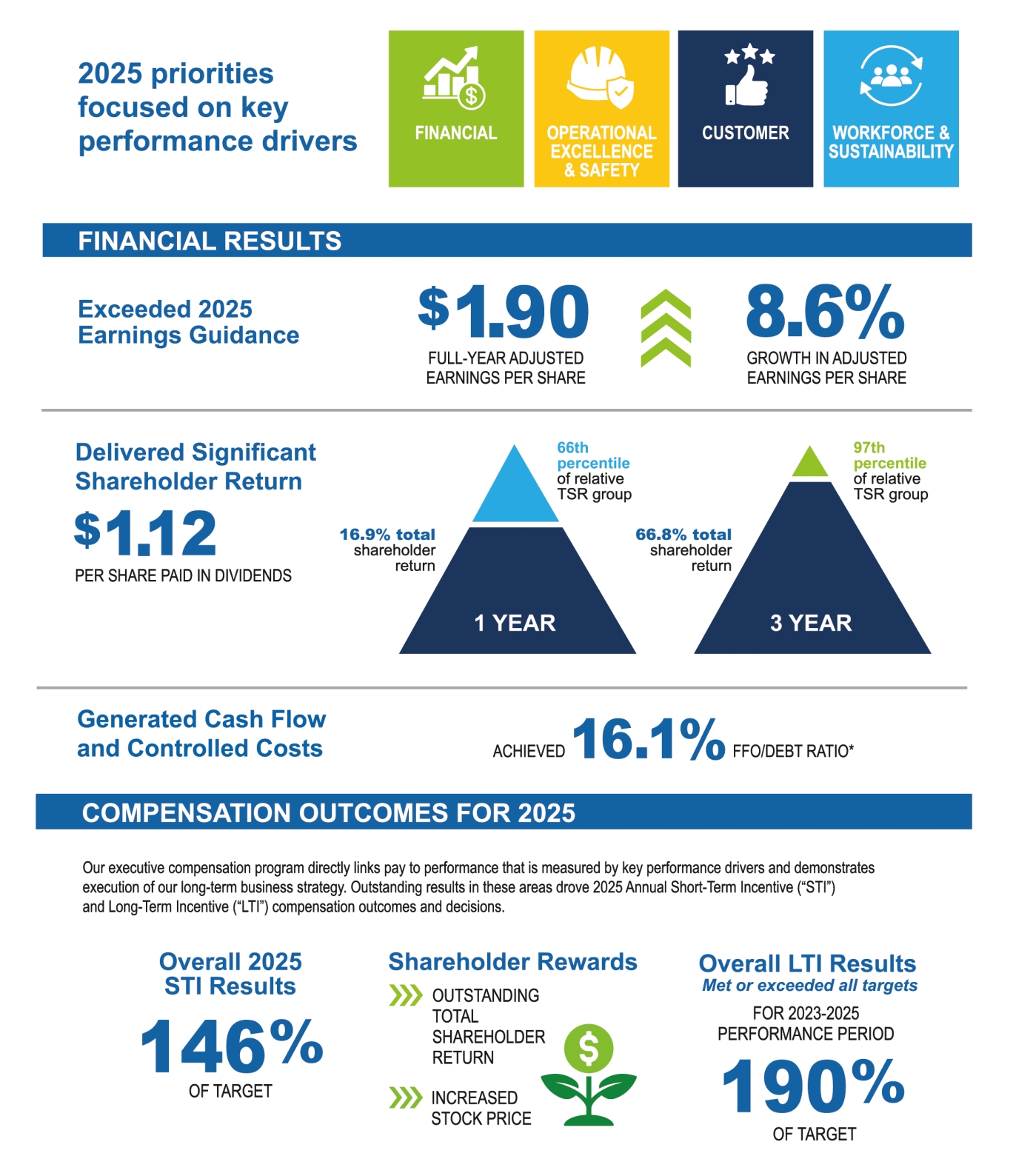 The Compensation & Human Capital (“C&HC”) Committee, the Safety, Operations, Regulatory and Policy (“SORP”) Committee, the Finance Committee and the N&G Committee are each charged with overseeing the risks associated with their respective areas of responsibility. The C&HC Committee oversees risks related to executive compensation and human capital management matters, including incentive compensation, succession planning, workforce initiatives, employee engagement, culture and talent management. The SORP Committee oversees risks related to safety and operations. The Finance Committee oversees risks related to capital management and allocation and investor relations. The N&G Committee oversees risks related to environmental, social, sustainability and climate change matters, public company governance, CEO succession planning, political spending and stockholder engagement. For more information regarding the oversight responsibilities of the Board Committees, see the descriptions of the committees below.