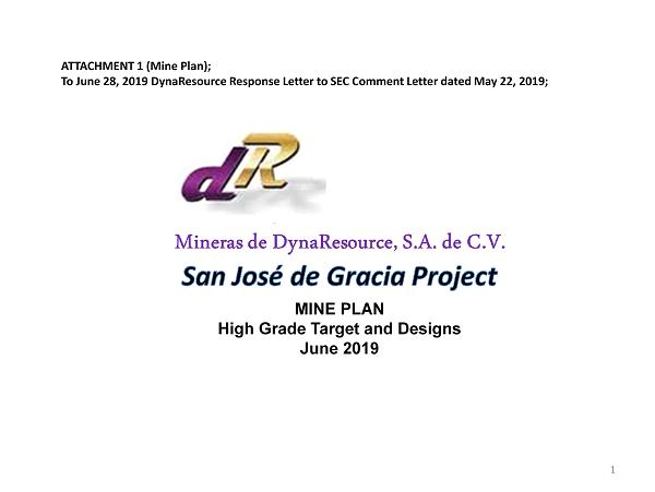 1 MINE PLAN High Grade Target and Designs June 2019 ATTACHMENT 1 (Mine Plan); To June 28, 2019 DynaResource Response Letter to SEC Comment Letter dated May 22, 2019;