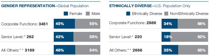 | of our independent directors were ethnically diverse or women | of senior-level hires were ethnically diverse or women(1) | of our associates in our global workforce were women | of our U.S. associates were ethnically diverse |