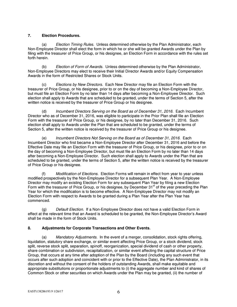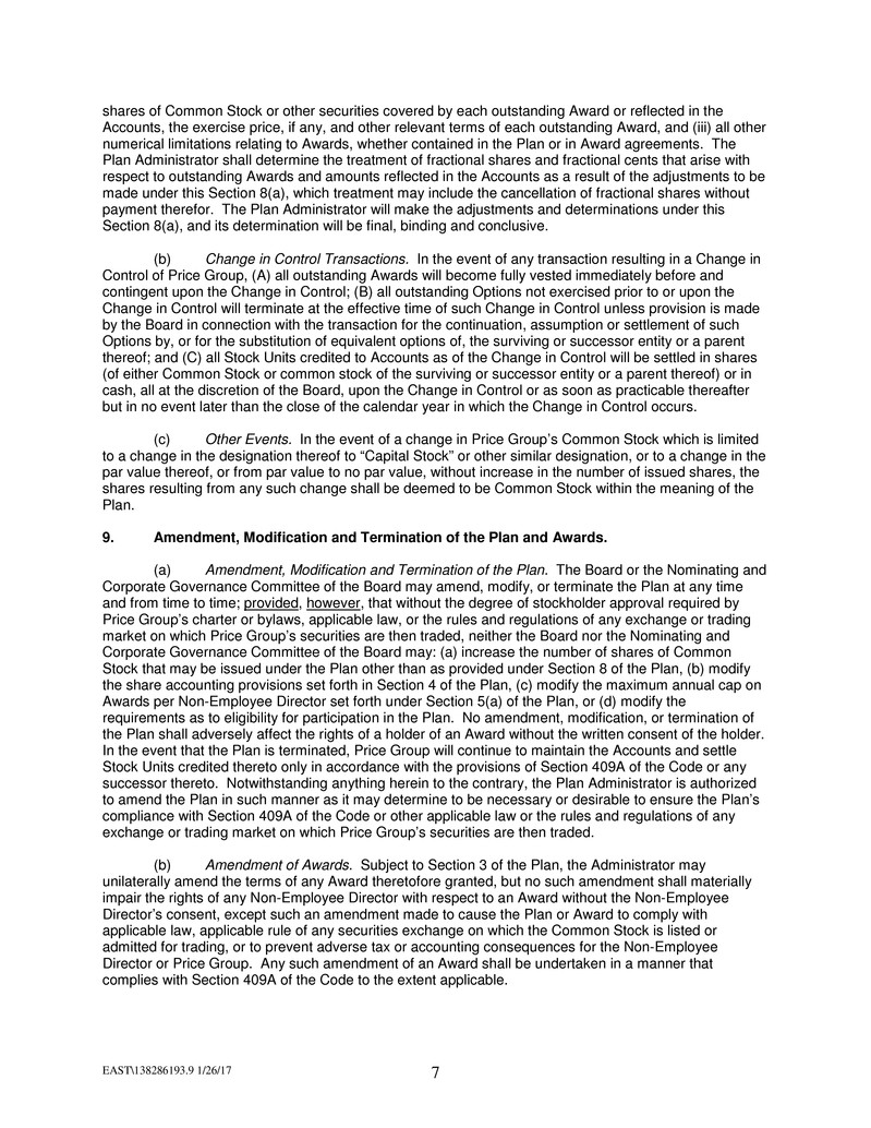 Board of Directors of Price Group (“Board”) on February 16, 2017, and is effective as of the date that it is