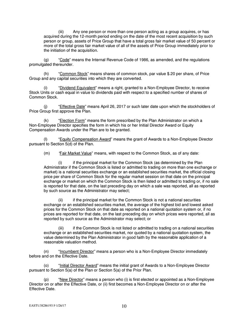 approved by the stockholders of Price Group (“Effective Date”). The Plan will serve as a successor to the