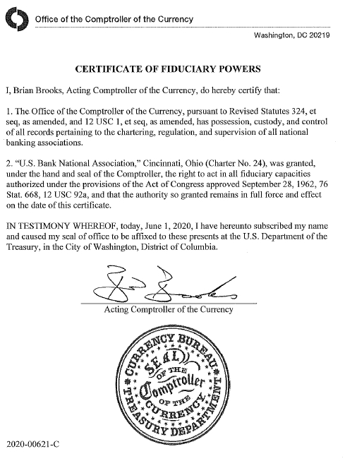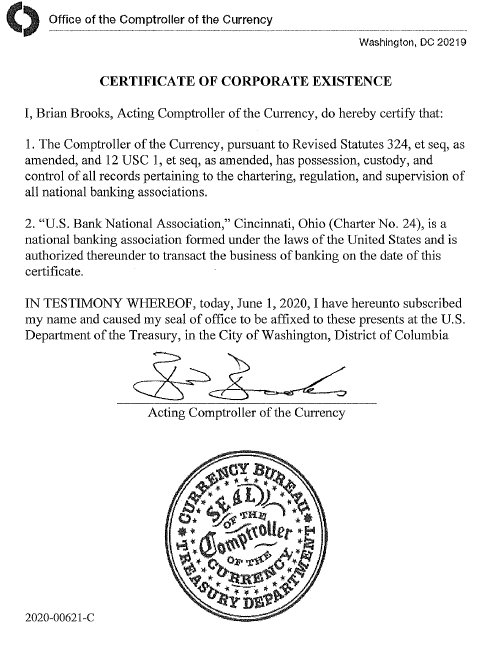A copy of the certificate of authority of the Trustee to commence business, attached as Exhibit 2. | |