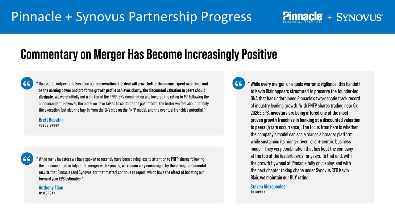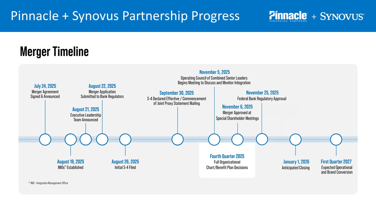 Financial Partners, Inc. (“Pinnacle”), including future financial and operating results (including the anticipated impact of the proposed transaction on Synovus’ and Pinnacle’s respective earnings and tangible book value), statements related to