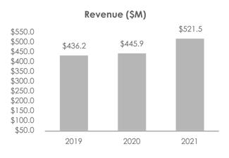 | • | We generated annual revenues in 2021 of $521.5 million, up 17% over the prior year. |