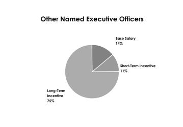A significant portion of pay for executive officers is at-risk and performance-based with metrics that align total compensation with the Company’s sustainable growth strategy and values, annual financial objectives, and performance of our stock price. At-risk compensation includes short-term cash and performance-based equity awards as long-term incentives. | |
