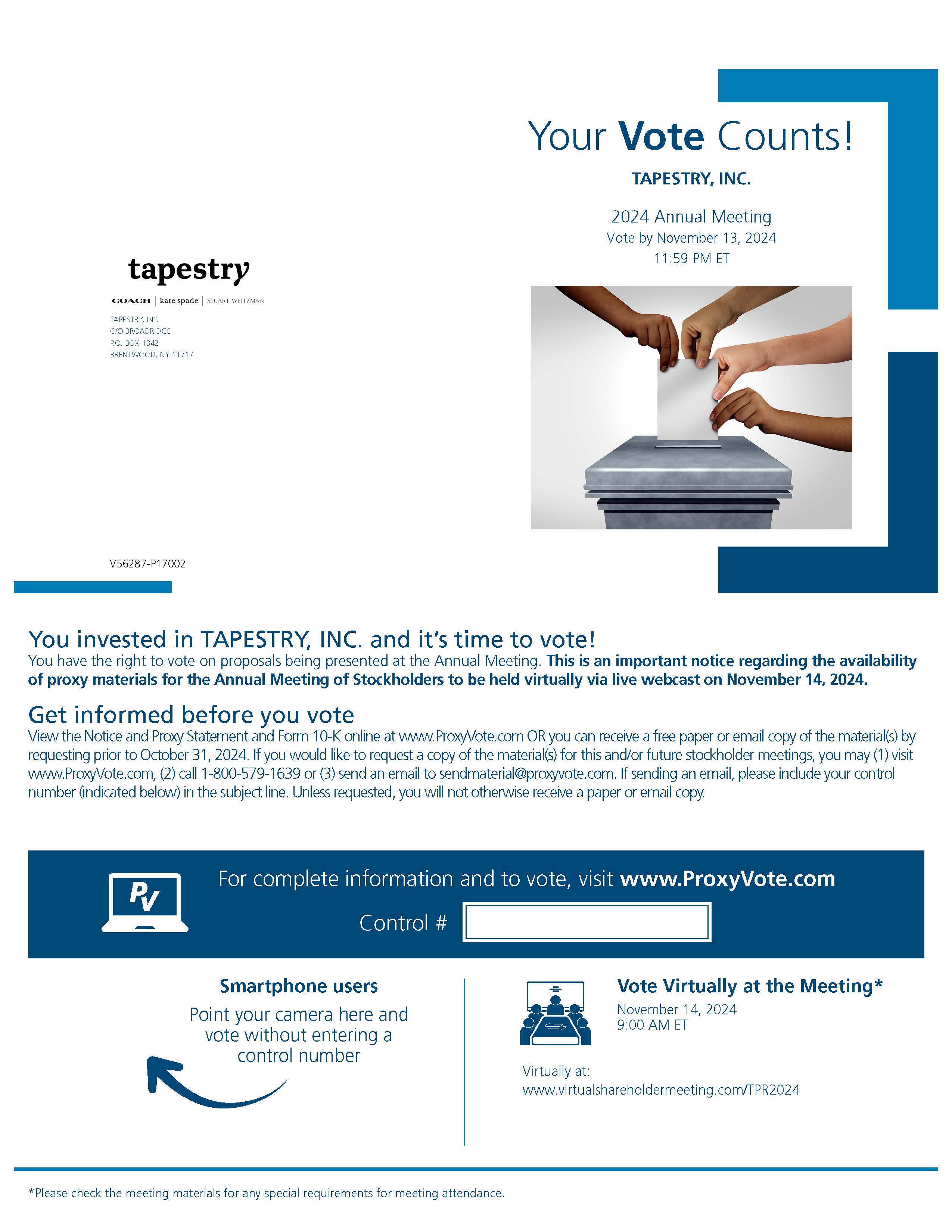 | Tapestry, Inc.  |