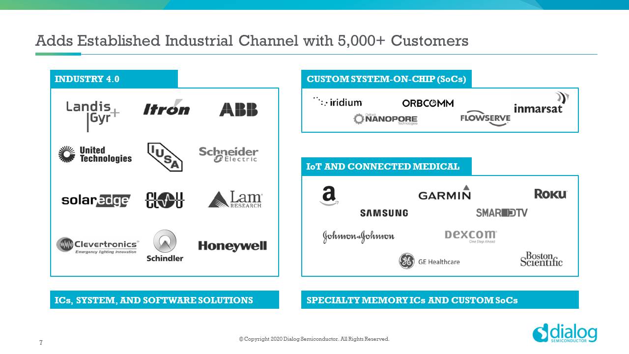 perfectly complements one of the leading wireless portfolio, which we can now target for smart building and industrial applications. Cloud-connectivity adds further differentiation to Dialog's existing industrial solutions. Additionally, the