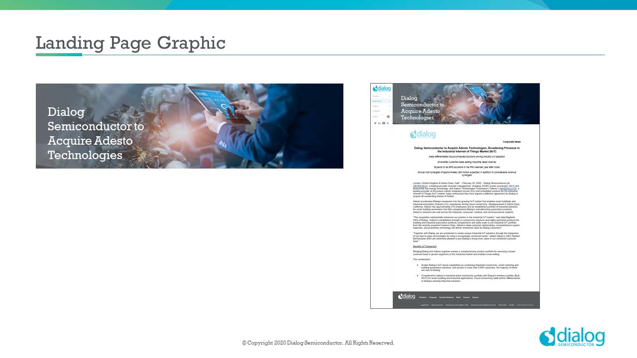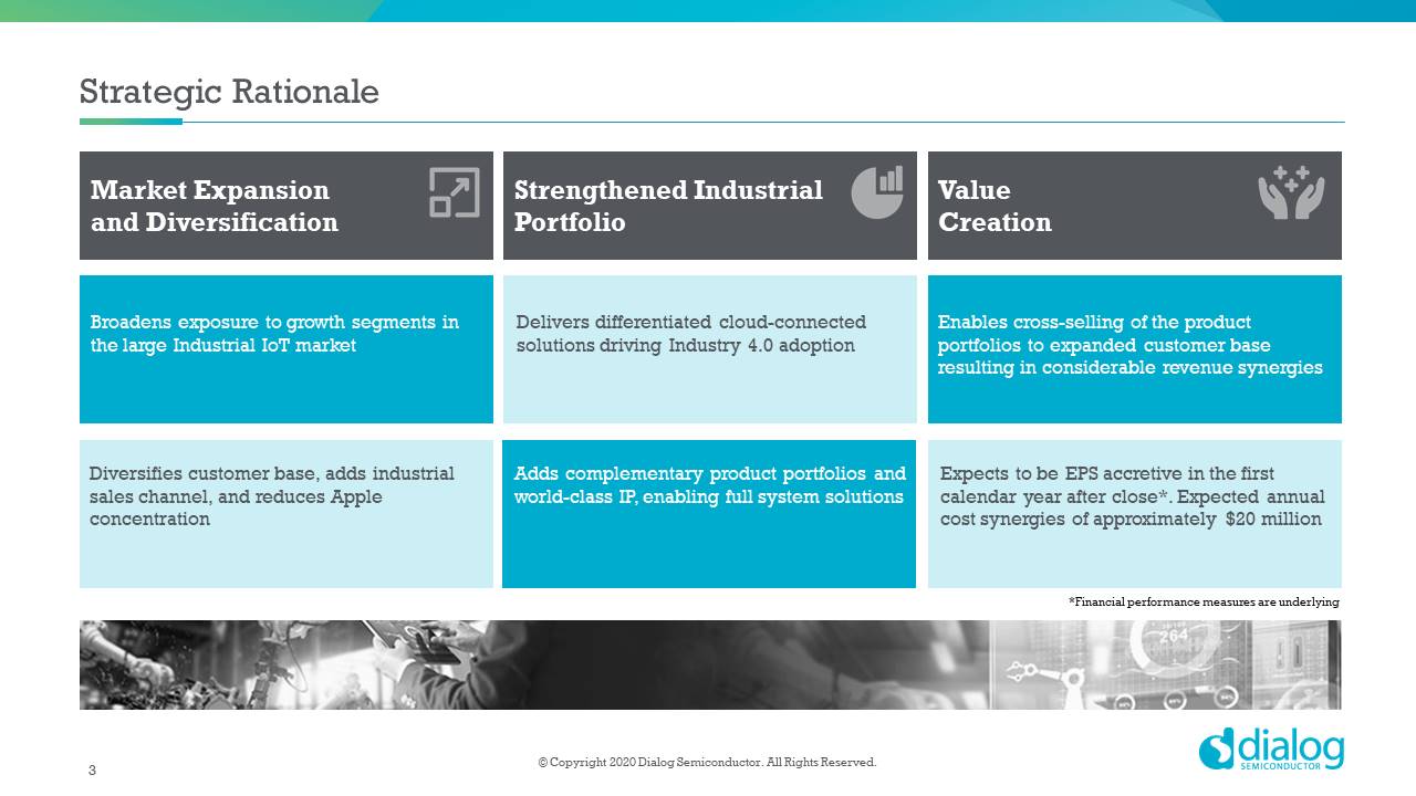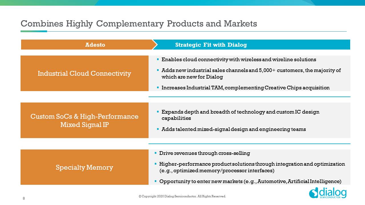 Let's move on to Slide 8 to run through the advantages that the combination of Adesto and Dialog will bring to customers in our target