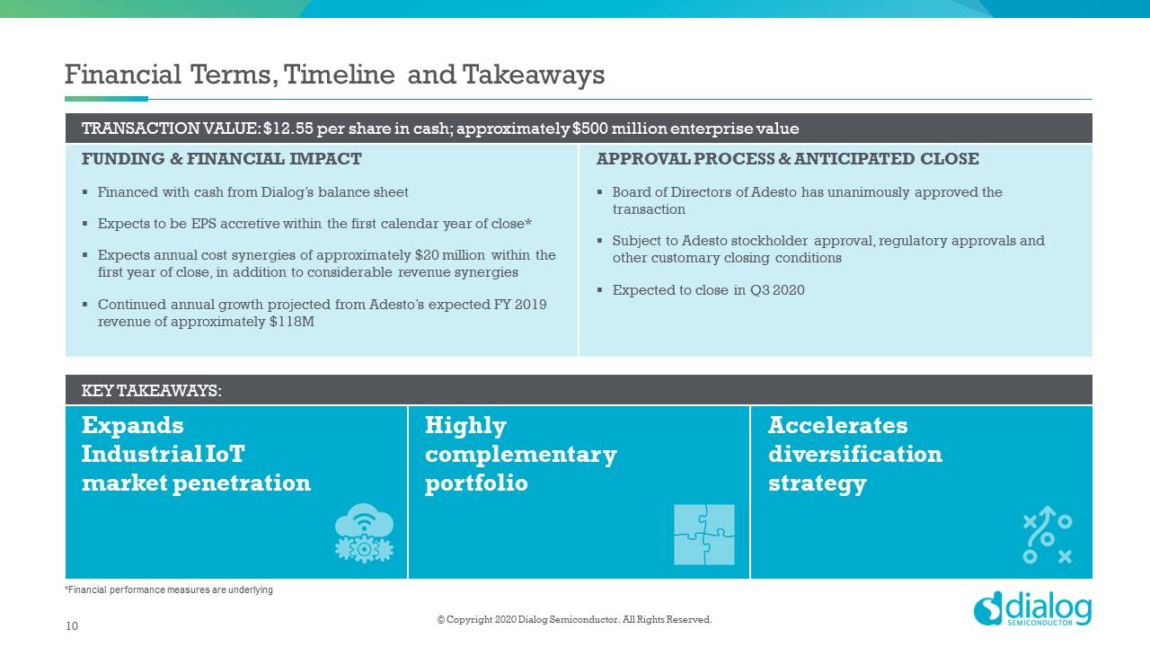 This is the first step in the process and Adesto and Dialog will remain separate and independent companies until the transaction closes, which we expect to