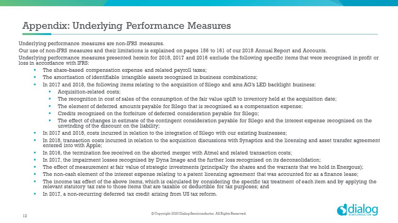 diverse low-power mixed -signal business. We have made very good progress throughout 2019, launching new products and expanding our presence in Automotive and IoT. In addition, we have continued to invest in the inorganic expansion of our