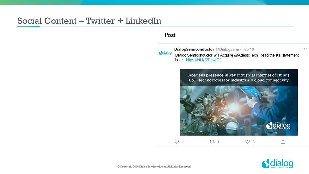 Earlier, we announced that Dialog has entered into an agreement to acquire Adesto. As CEO of Dialog, I wanted to reach out and tell you more about why we are
