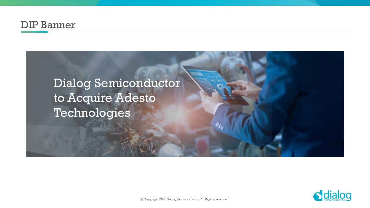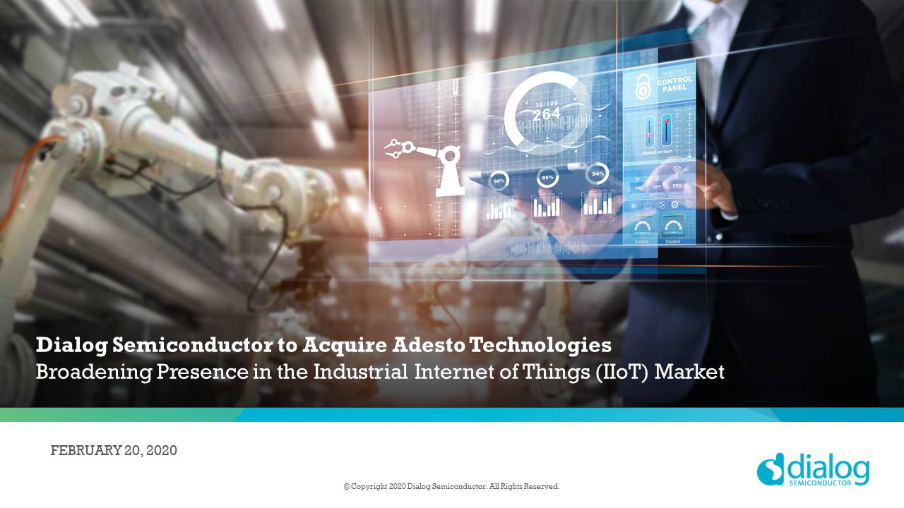 industrial IoT market. Adesto Technology and IP enabled seamless connectivity of heterogeneous systems in an industrial environment through the cloud for building and industrial automation. These capabilities, together with Dialog's portfolio