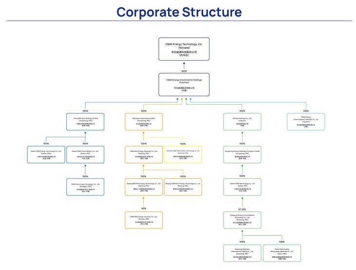 CBAK Energy Technology, Inc. is a holding company incorporated in Nevada, the United States, with no material operations of its own. We conduct our business through our operating subsidiaries in China. This structure involves unique risks to investors, and you may never directly hold equity interests in the operating entities.