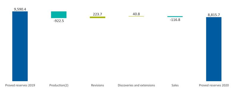 | Total proved reserves (developed and undeveloped) | 7,552.3 | − | 7,580.1 | − | 8,815.7 |