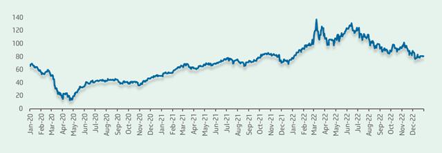 In this context, the Base scenario considers an oil price range ranging from an average of US$ 85/bbl in 2023 and reaching US$ 55/bbl from 2030 onwards, that is, price expectations similar to the Announced Pledges scenario (APS) by the International Energy Agency, which is aligned with a 50% probability of keeping the temperature increase below 1.7°C by 2100. The APS scenario assumes that all aspirational targets announced by governments are met on time and in full, including its long-term net zero and energy access targets.