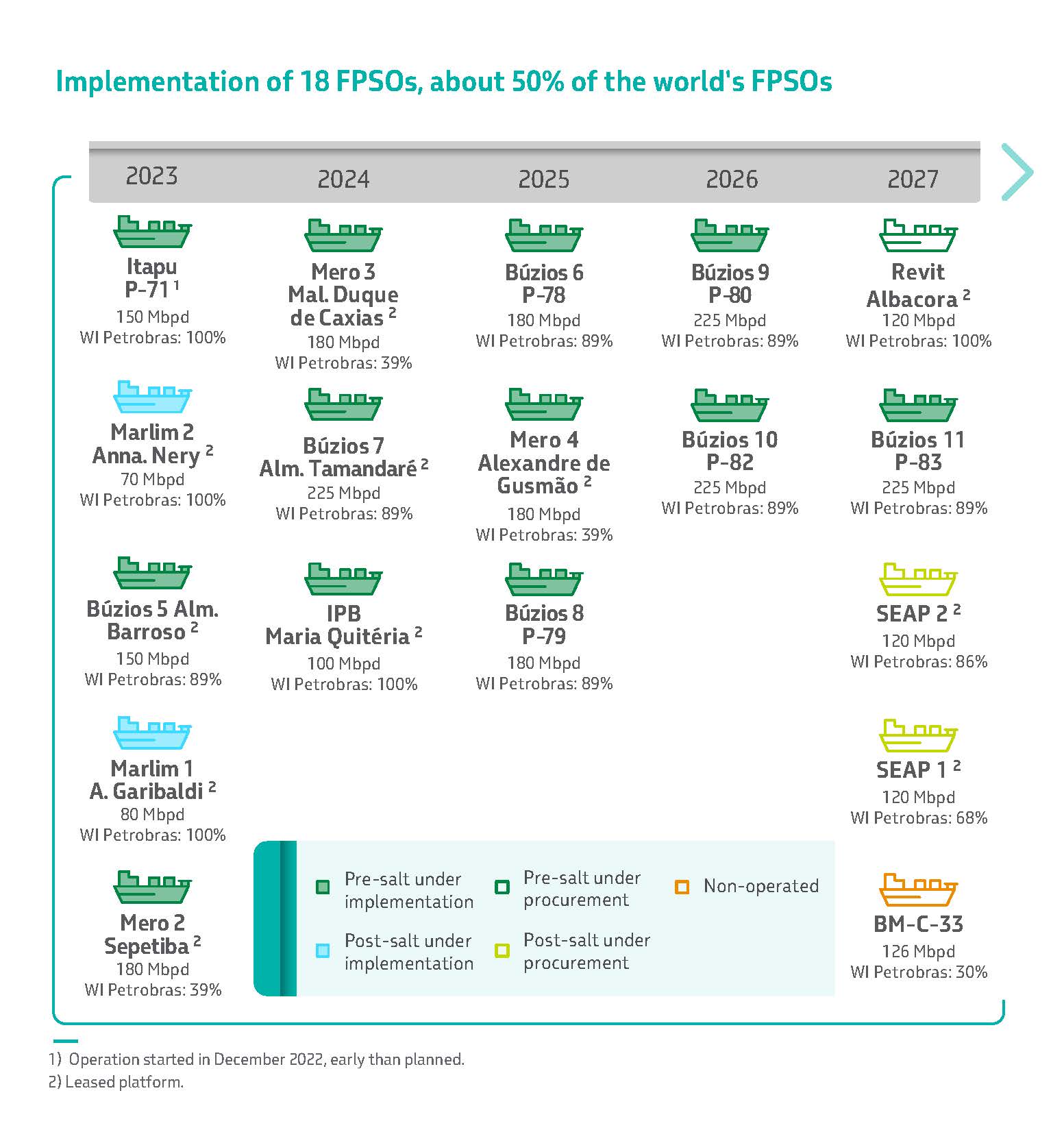 For environmental variables in the oceanic region, we currently rely on technological partners to simulate atmospheric conditions, ocean circulation and future waves under the effect of climate projections in the Santos, Campos and Espírito Santo Basins, which concentrate approximately 90% of current production of the company. For the studied offshore meteoceanographic variables, in general, over the useful life of our assets, the magnitude of the impacts is within the safety parameters considered in our projects.