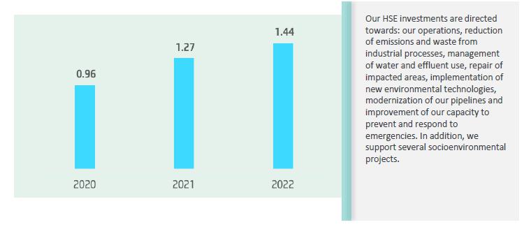 • Consolidation of the 55% reduction (compared to 2015) in the intensity of methane emissions in the upstream segment by 2025, reaching 0.29 t CH4/thousand tHC.