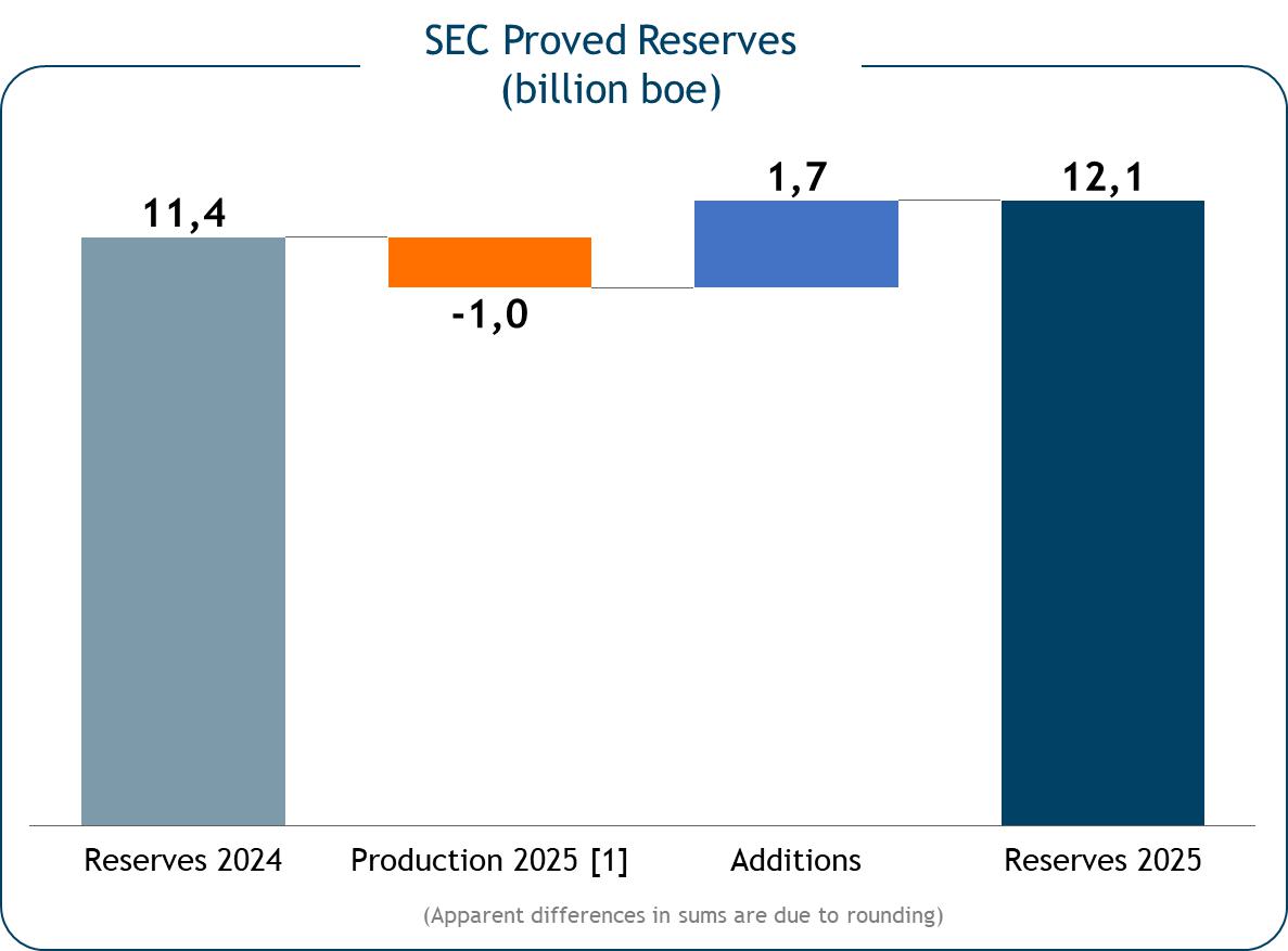 In 2025, Petrobras followed the trajectory of significant reserves addition (1.7 billion boe), maintaining focus on providing value for the society and shareholders, pursuing energy security for the country's sustainable development and for a just energy transition. The reserve replacement rate (RRR) was 175%, even after a record annual production in 2025. The proved reserves-to-production ratio (R/P) is 12.5 years.