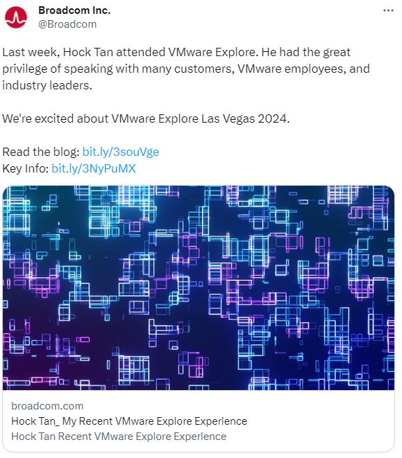On August 28, 2023, Broadcom Inc. published the following post on Twitter: