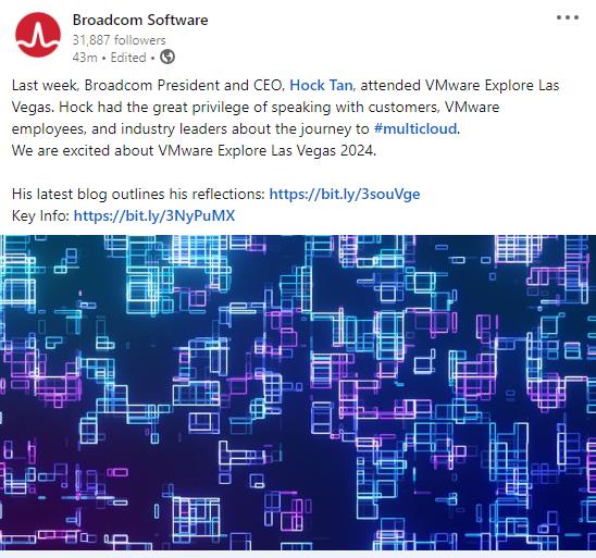 On August 28, 2023, Broadcom Software published the following post on LinkedIn: