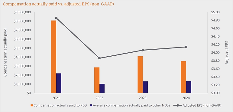 • The second year of the “pay versus performance” disclosure required by the SEC, providing additional compensation data for our named executive officers.